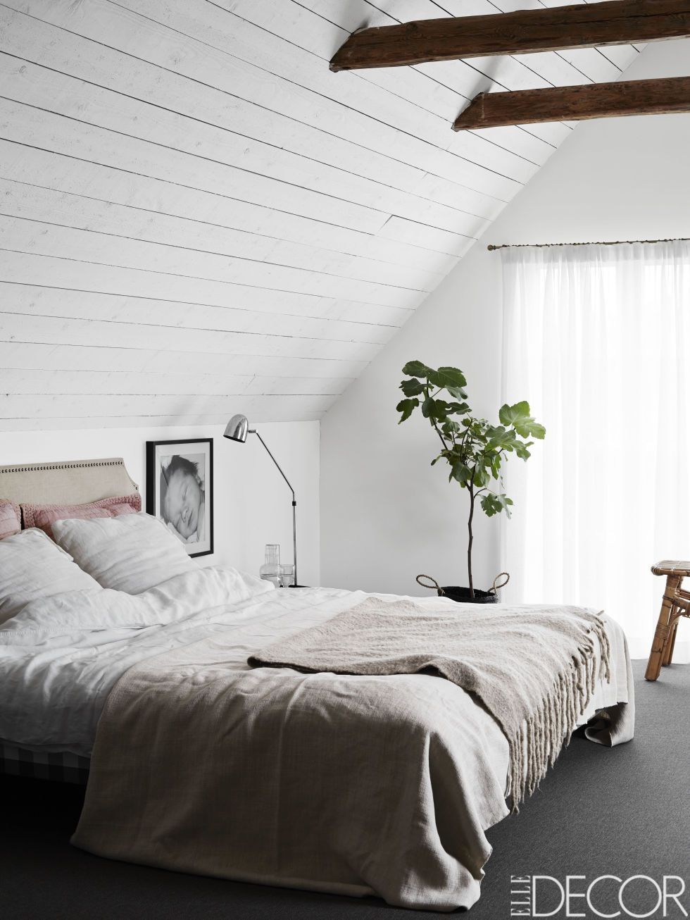 Một khía cạnh phổ biến của những phòng ngủ mộc mạc tối giản là giường thấp. chúng thật tuyệt vời cho những căn phòng gác mái ngắn trên không gian trần